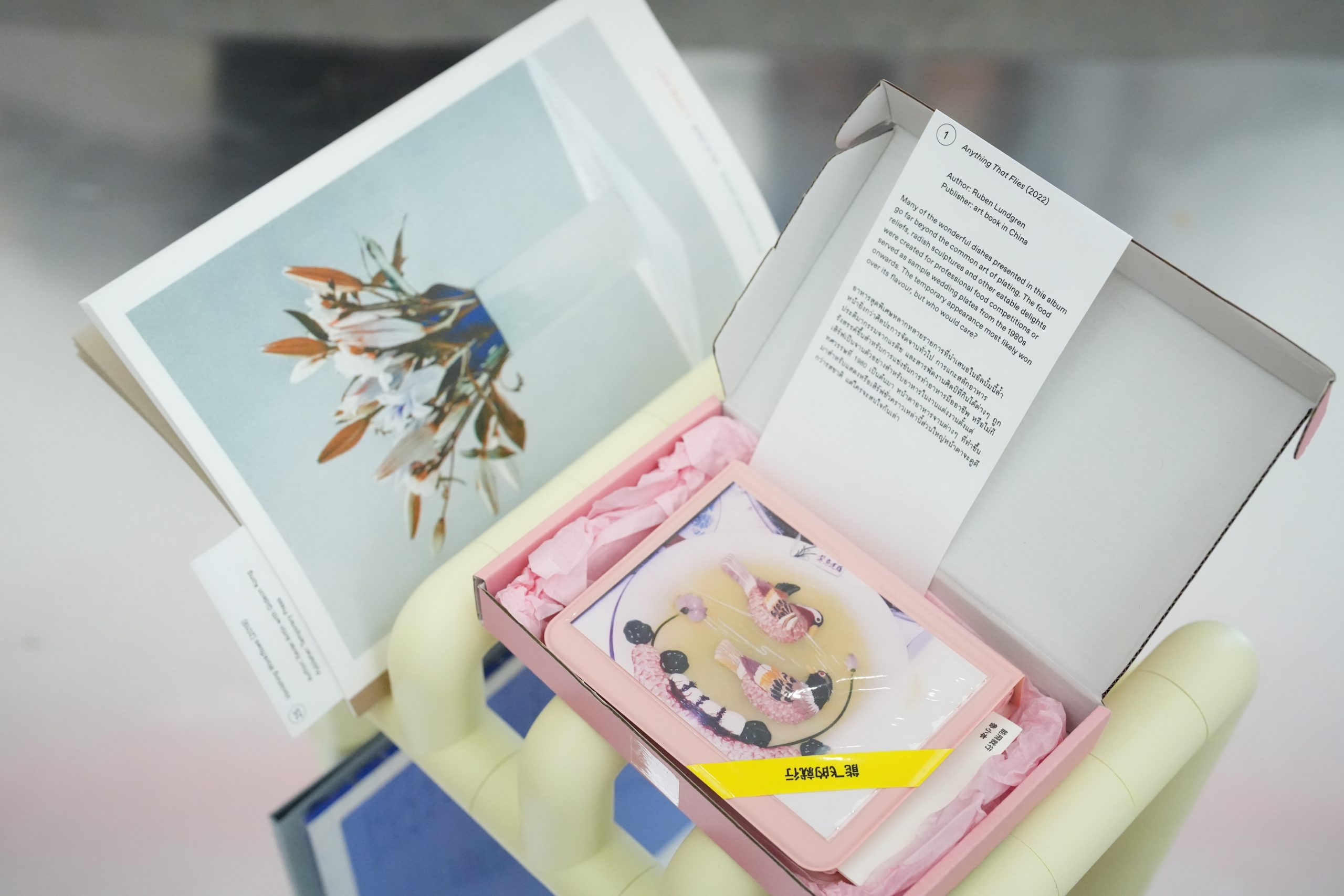 หนังสือที่จัดแสดงที่ Pon Ding ไทเปประเทศไต้หวัน มาจากโปรเจกต์ศิลปะของหลากหลายศิลปิน เช่น A Firetime Story (2564) โดย เอวา ลิน ที่ซึ่งศึกษาเมืองทางใต้ของไต้หวัน พื้นที่ของคนพื้นถิ่นไถตง เพื่อจินตนาการถึงโลกในระดับจิตวิญญาณ และความรู้ที่เกิดขึ้นผ่านผัสสะทางร่างกายและความทรงจำที่ย้อนแย้งกับความรู้และตรรกะในปัจจุบัน