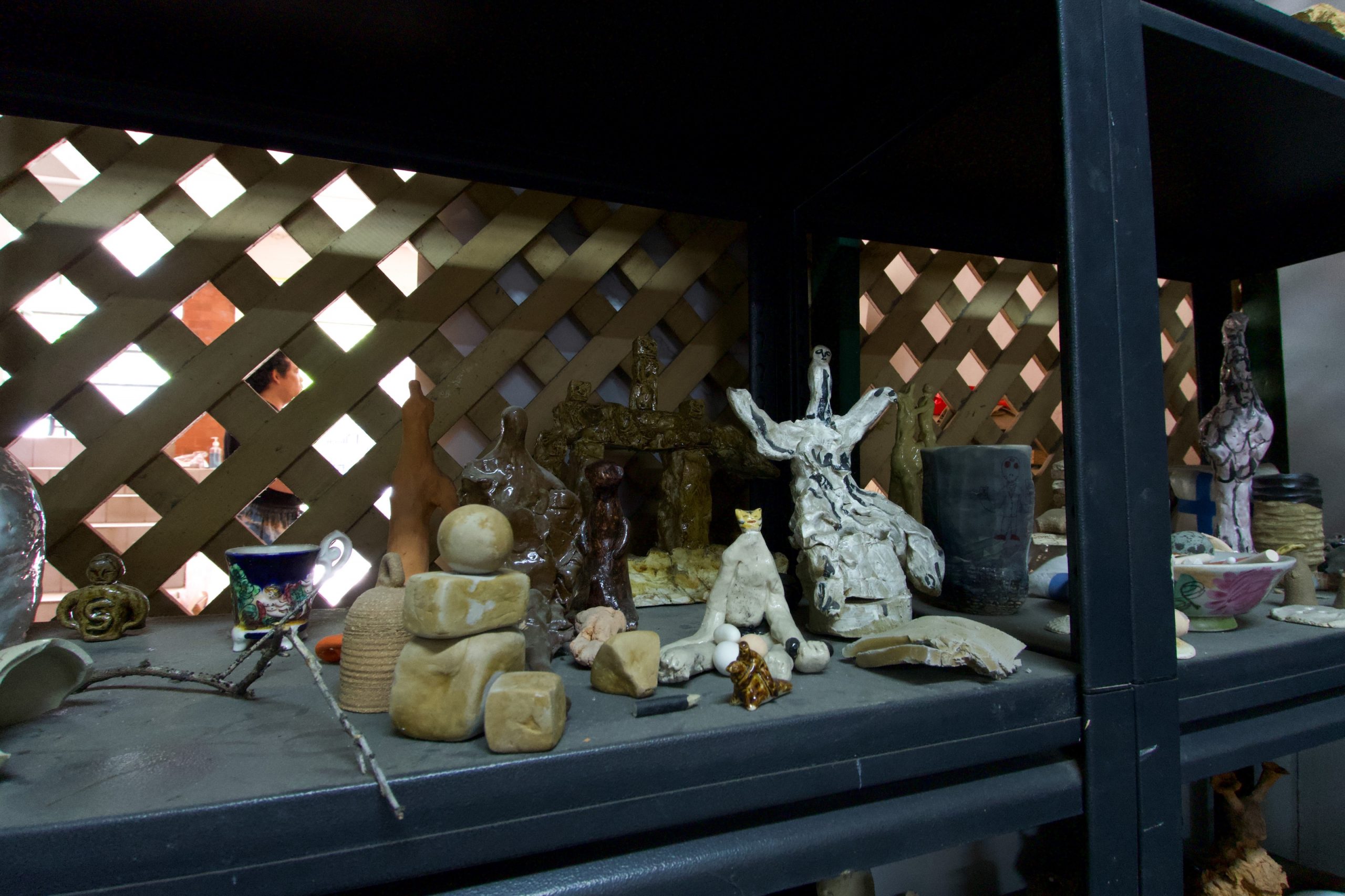 งานปั้นชิ้นเล็กที่มีเยอะมากในสตูดิโอหลังนี้ บางชิ้นคลับคล้ายคลับคลาราวกับเป็นต้นแบบให้กับงานจริงที่เคยเห็นในนิทรรศการ