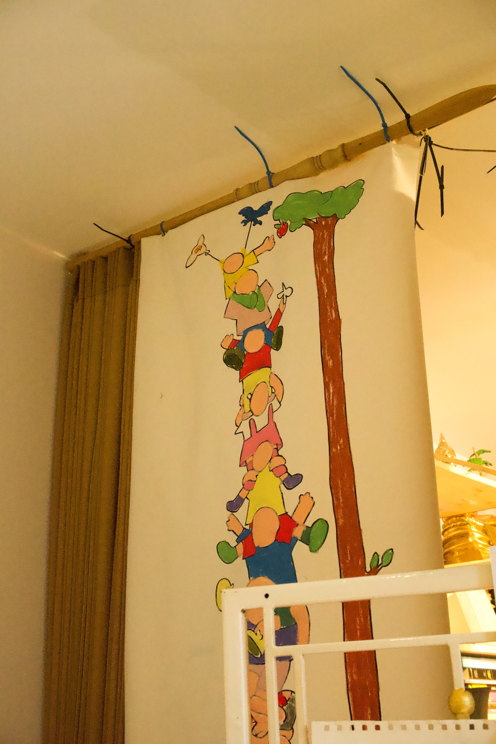 หนึ่งในผลงานสเกตช์ที่องค์ประกอบคุ้นเคยอยู่ครบ เด็ก ต้น ไม้ อีกา คงเพิ่งนำมาแขวนไว้ในห้องได้ไม่นาน คราวก่อนยังไม่เคยเห็นรูปนี้ และห้องก็ไม่จัดแบบนี้